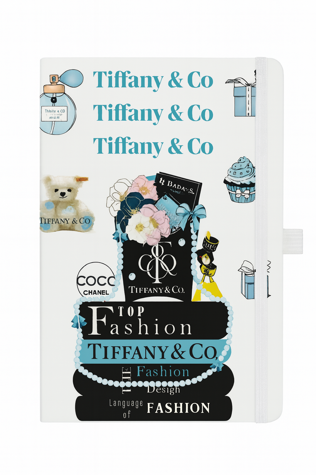 A chic and stylish notebook inspired by a mix of luxury designer themes — from iconic brands like Tiffany, Chanel, Dior, and more. Perfect for jotting down ideas, journaling, or gifting to someone who loves fashion and flair.